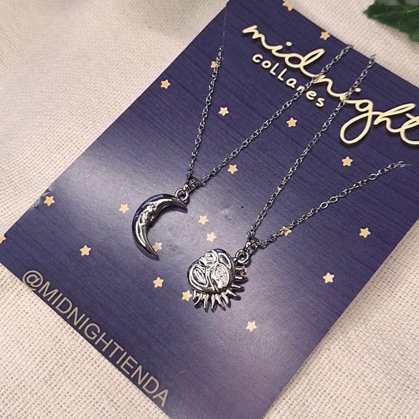 COLLARES COMPARTIDOS SOL Y LUNA PLATEADOS